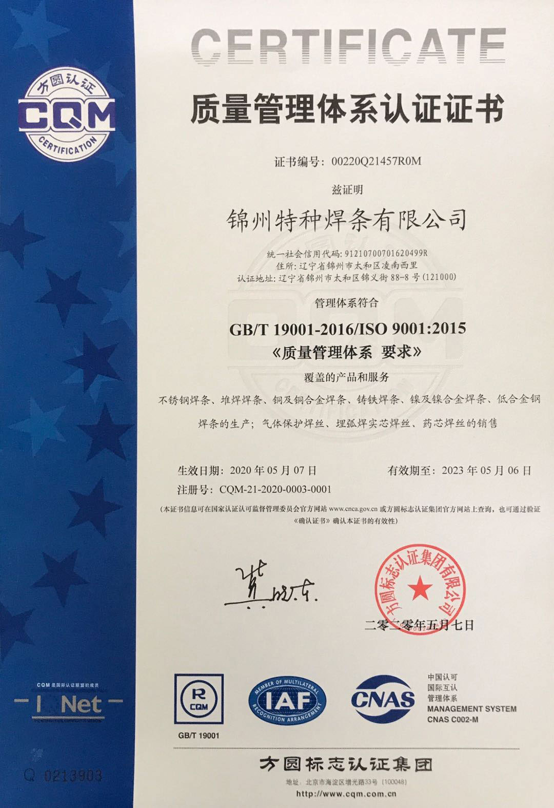 Certification Category:GB/T 19001-2016/ISO 9001:2015 Quality management systems---Requirements